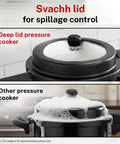 The innovative SVACHH lid is specially engineered to control spills by directing excess froth and liquid back inside the cooker, keeping your stovetop clean. With built-in safety features like the controlled gasket release system (GRS) and metallic safety plug, cooking is both faster and safer.