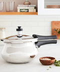 Features 2-in-1 PI Pressure Indicator for safe cooking